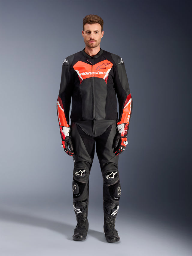 Une veste de moto sportive superbement stylisée en cuir haut de gamme avec des panneaux extensibles HRSF pour une résistance optimale à l'abrasion et une mobilité améliorée, la veste v3 en cuir combine des caractéristiques de protection et de performance de premier plan pour offrir un confort optimal au pilote. Avec sa silhouette sportive raffinée et renforcée, la construction de la veste s'appuie sur des lignes dynamiques et des détails de finition pour offrir un style frais et moderne dérivé de la course.