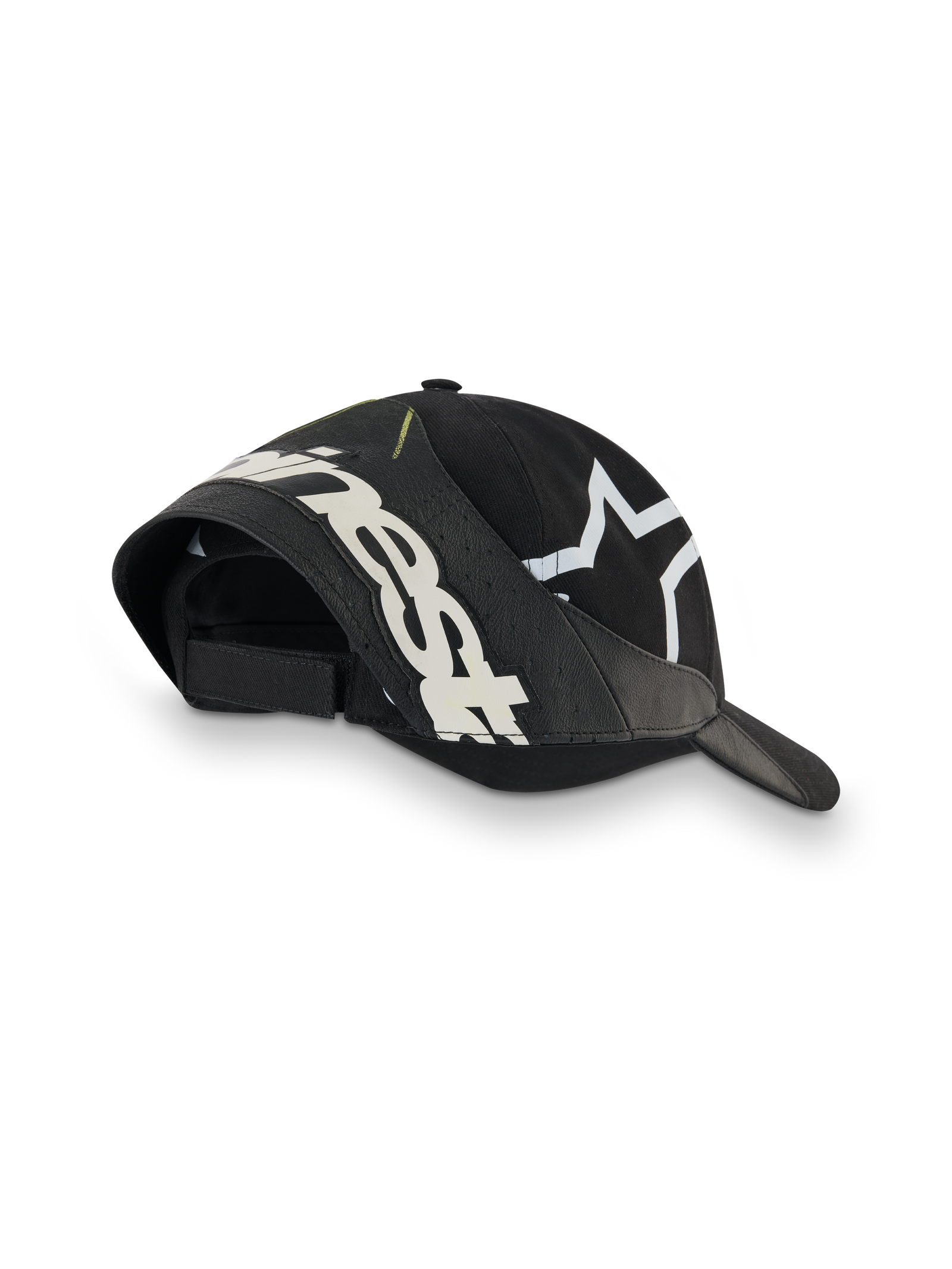 Depuis sa création, la philosophie de conception RSRV a tourné autour des références à l'héritage de course d'Alpinestars, et du réemploi des pièces, éléments et vêtements de course précédemment utilisés trouvés dans l'usine et les installations de R&D d'Alpinestars. C'est très certainement le cas avec le RESURGENCE HAT. La casquette à 6 panneaux présente un empiècement en cuir qui s'étend vers l'arrière en référence aux spoilers aérodynamiques intégrés dans les casques de moto Supertech R10 à la pointe de la technologie d'Alpinestars. Le composant "spoiler" est fabriqué à partir de cuir réutilisé provenant de combinaisons de course usées et mises hors service qui ont protégé les athlètes MotoGP d'Alpinestars. De grands logos Astar ornent chaque côté de la casquette, imitant le placement du logo sur les casques Supertech R10, tandis que de petits logos RSRV ont été sublimés à l'arrière du "spoiler". Alors que la collection de cette saison explore les défis et les triomphes de la blessure et de la récupération, il était inévitable qu'un hommage soit rendu à ce qui est sans doute l'équipement le plus important pour prévenir les blessures graves… le casque. Et le RESURGENCE HAT est cet hommage.