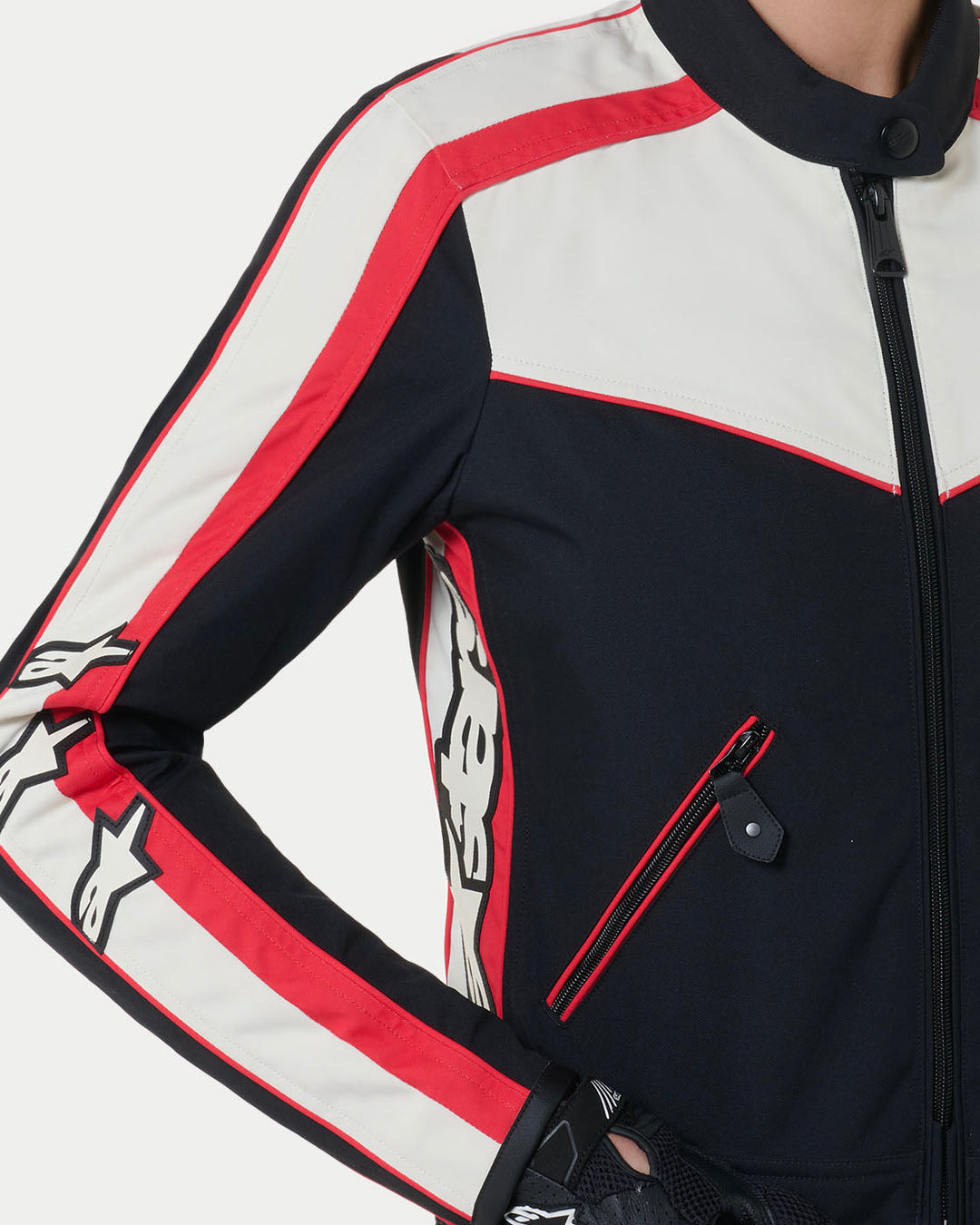 Présentation de la veste Stella T-DYNO WR, la version textile pour femmes de la veste en cuir emblématique Dyno d'Alpinestars, alliant style patrimonial et innovation moderne. Inspirée par le riche héritage d'Alpinestars dans la fabrication d'équipements de moto, cette veste combine harmonieusement des éléments de design vintage avec une technologie contemporaine, offrant une fusion du passé, du présent et du futur. Développée comme une extension de la ligne classique d'Alpinestars, la veste Stella T-DYNO WR réunit l'attrait intemporel de l'équipement de moto vintage avec des matériaux et des designs innovants. En conservant des schémas de couleurs classiques avec des touches sportives, cette veste introduit de nouvelles combinaisons de couleurs et un développement de logo qui élèvent encore son esthétique.